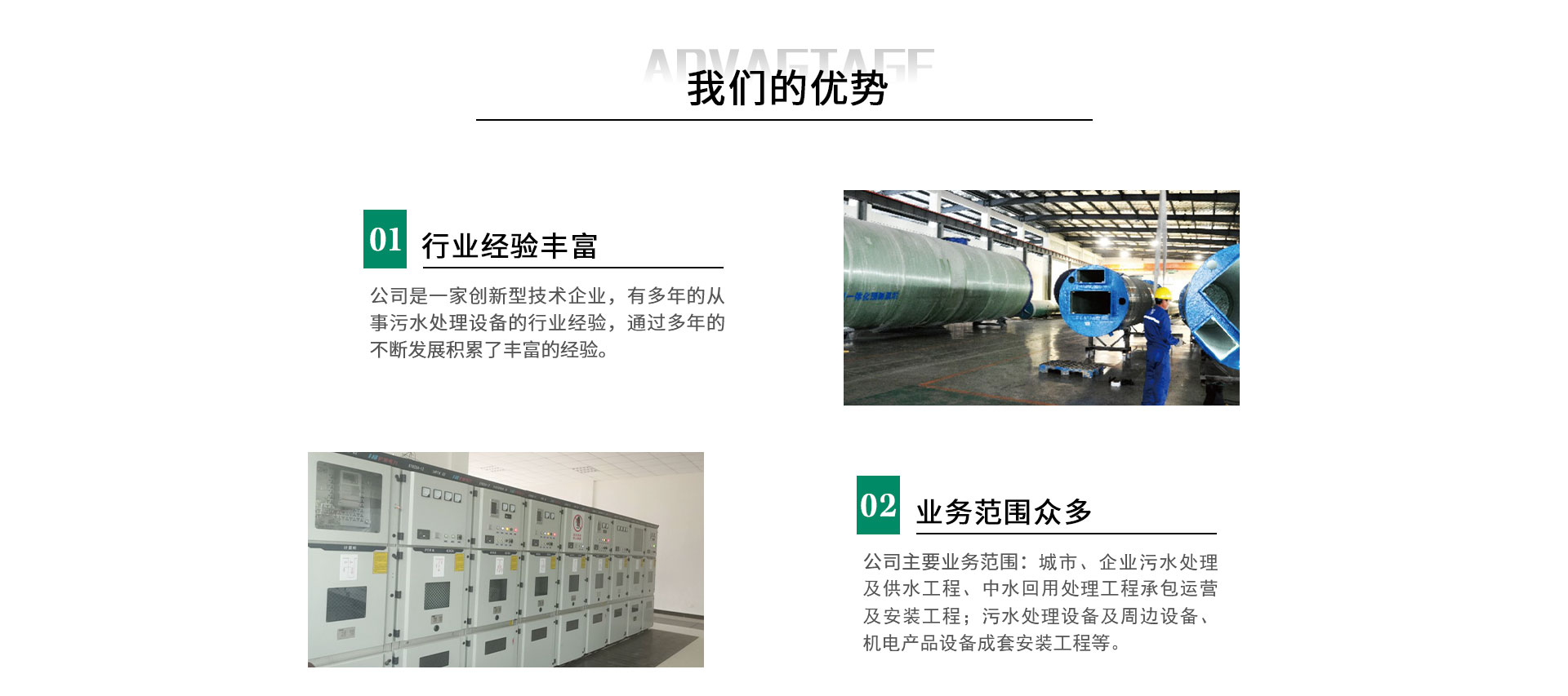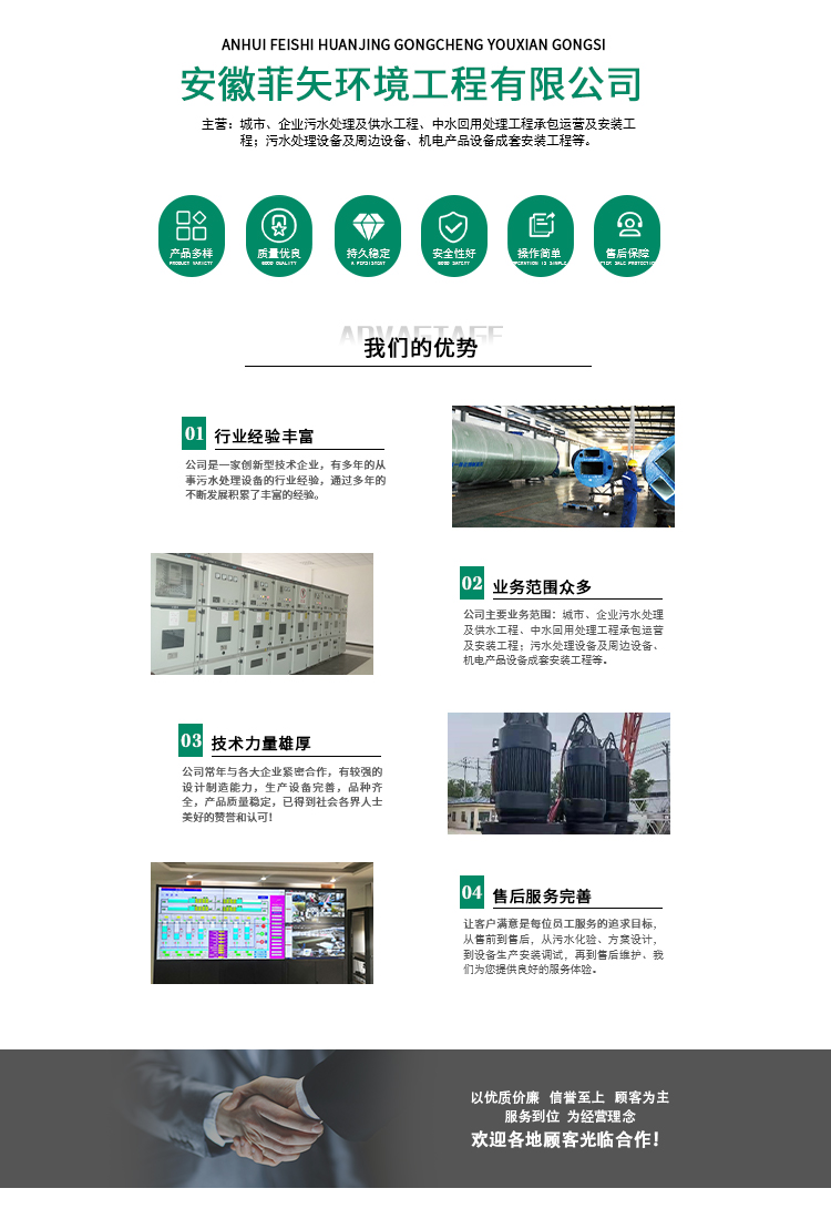 公司是一家集環(huán)保技術(shù)科研、設(shè)計、生產(chǎn)、銷售和維護(hù)為一體的綜合型高新技術(shù)企業(yè)。致力于人類社會環(huán)境的改善,倡導(dǎo)環(huán)境友好型的生產(chǎn),與您共建美好家園...